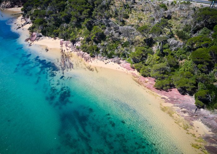 Aerial overlooking Aslings Beach Rock Pool, Eden