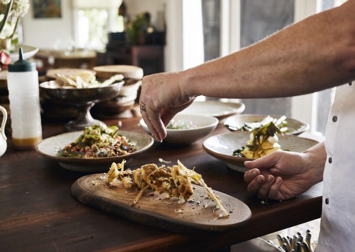 The one-hat Zin House is part of Lowe Wines, an organic and biodynamic family-owned vineyard just outside of Mudgee. Most of what you’ll see on your plate is sourced from the extensive kitchen garden, orchard and farmland, creating vibrant dishes like Jerusalem artichoke risotto and mandarin and rivermint sorbet. The fine dining Pipeclay Pumphouse, set within Robert Stein Vineyard & Winery, follows a similar ethos. The seasonal six-course menu is driven by produce grown on the farm or sourced from local suppliers.