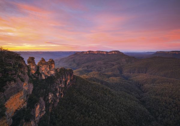 Sun setting over the Grose Valley in the Blue Mountains National Park