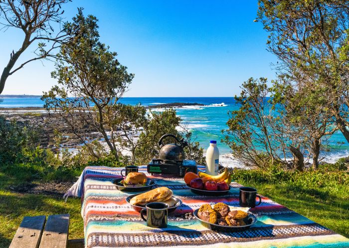 Towards the Queensland border near Nimbin, relax amid rolling hills and verdant greenery at Mount Warning Views Camp. Nearby dams, waterholes, hikes and mountain bike tracks provide plenty to do. Further south near Wooli you’ll find the hidden camping gem Diggers Camp, which is just a stone’s throw from a secluded beach and boasts panoramic ocean views. Nearby, Boorkoom campground feels like the ends of the earth: offering just 11 clifftop campsites atop the northern end of Wilsons Headland, and incredible ocean views.