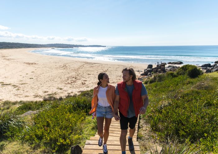 Amble along a traditional walking track of the Brinja-Yuin people and immerse yourself in an Indigenous perspective on the South Coast. In Eurobodalla National Park, the Bingi Dreaming Track follows a Songline – a traditional storytelling route passed down in song cycles, stories, dance and art. The 13.5km walk covers a stunning stretch of coast, from Congo in the north to Tuross Head in the south, and links campsites, ceremonial and trade sites, and water and food sources. Keep an eye out for shell middens, spectacular views of Gulaga (Mount Dromedary) and Baranguba (Montague Island), and humpback whales, just as the locals have done for tens of thousands of years.