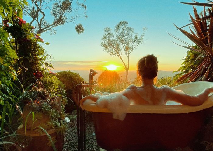 Bath at sunrise at Kookawood Rural Retreat, Blue Mountains - Credit: Kookawood Rural Retreat