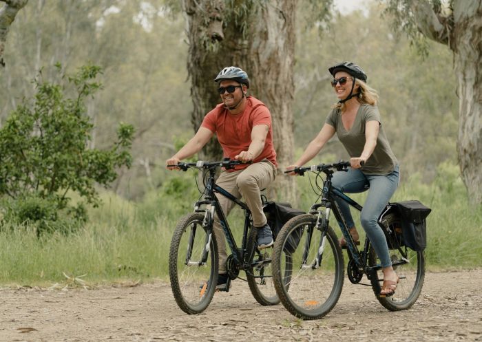 Corowa – less than an hour’s drive from Albury and perched on a bend of the Murray – is cowboy country. Work up an appetite when you get to town by hiring a bike from SportsPower Corowa, then stopping by the Corowa Visitor Centre to grab a map and plot out a cycling route past the town’s historic buildings, such as the Rex Theatre, Corowa Courthouse and Oddfellows Hall. Alternatively, head to the foreshore: Corowa Lagoon has a cute riverfront beach, while Rovers Park is the spot for long-lunch picnicking and launching kayaks and canoes, which you can hire from caravan parks in the area.