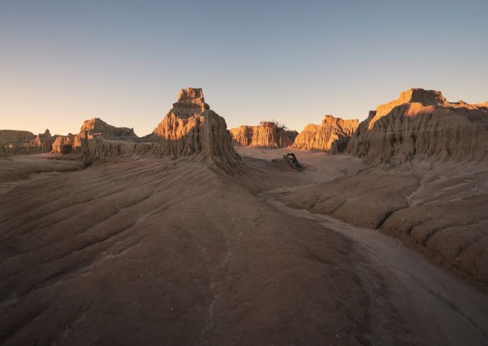 You’ll want to hit the road early today, as we explore the wide-open spaces of Mungo National Park, a traditional meeting place and spiritual site for the Muthi Muthi, Nyiampaar and Barkinji Nations, Indigenous Peoples who have been living in the area for more than 40,000 years. Long ago in that history, this otherworldly spot was a fertile lake where humans and prehistoric mammals roamed side by side. Since then, the landscape has become a surreal desert topography, punctuated by lunettes, the eroded remnants of sand dunes, some towering up to 40m in height.