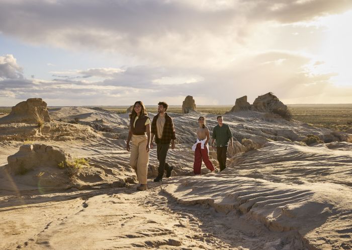 Explore this World Heritage-listed region a little deeper and learn about the heritage of this magical place on the Walls of China guided tour with a National Parks Aboriginal Discovery Ranger. Learn about traditional ways of life of the region’s first people; spot middens, ancient firepits and other parts of the world’s longest continuing culture; and understand the incredible significance of Mungo Man and Mungo Lady, 40,000-year-old remains discovered in 1968 and 1974.