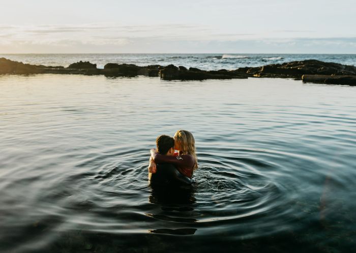 In the picturesque village of Sawtell near Coffs Harbour, built into the rocks at the foot of the Bonville Headland and adjacent to Bonville Creek, Sawtell Memorial Rockpool just might be the quaintest of all the ocean pools in NSW. Opened in 1963, the location offers protection from the rip that runs past it and provides a safer swim spot than the rest of the creek, making it popular with holidaying families.