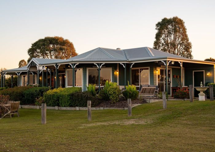 Amanda Patton always dreamed of owning a restaurant that felt like a country home and that’s exactly what Amanda’s on the Edge has achieved. Different dining spaces are spread throughout a sprawling weatherboard house, with views over the garden and vineyard, and a wood fire in winter. The menu has European and Asian influences, and is paired with wines from the surrounding wineries.