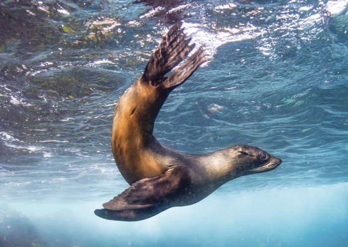 Off the coast of Narooma on the NSW South Coast, Montague Island is home to the largest fur seal colony on the NSW coast, with both Australian and New Zealand fur seals populating this tiny island. Take a snorkel tour here and you’ll also very likely see dolphins, Eastern blue groper, fiddler rays and Port Jackson sharks.