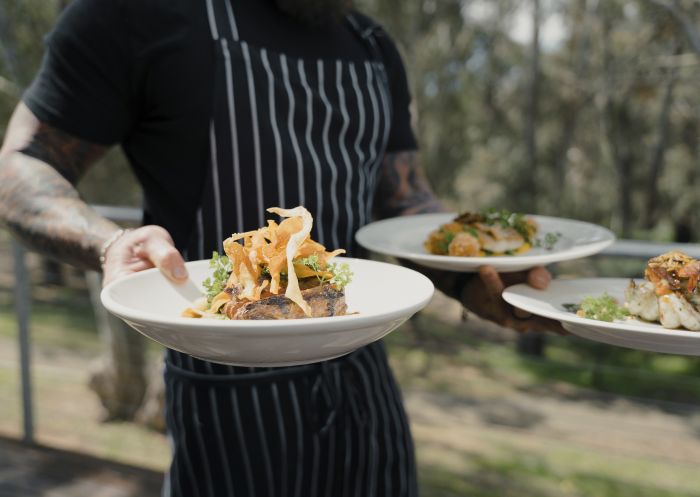 Chef serving meals at Morrisons Riverview Winery and Restaurant at Moama in Riverina, Murray - Credit: Visit River Country