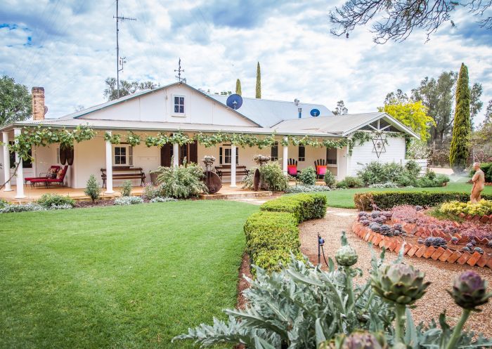 Corynnia Station is an enormous 7,000-hectare property that sits pretty in Carrathool, about an hour’s drive west of Griffith. In addition to having a flock of 11,000 sheep, the estate has an irrigating crop program including cotton and grains; you can learn more on a farm tour, which also visits the shearing shed. Choose between accommodation in the homestead, a one-bedroom cottage and a six-bedroom lodge, all of which are surrounded by a lush garden oasis replete with a pool and tennis court. The best bit? Pets are welcome.
