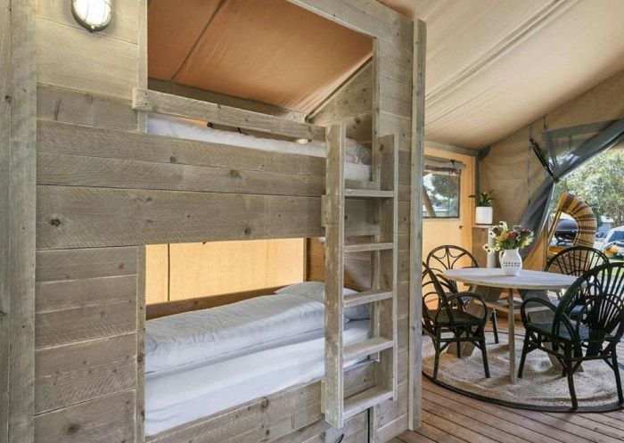 Glamping safari tents are just one of the accommodation options at Hillview Farmstay, a 400-hectare working estate that also comes with modern one-bedroom cottages and a four-bedroom lodge, each with its own barbecue and kitchen facilities. The estate is pet-friendly, but there are plenty of other animals to mingle with over the grounds, including alpacas, horses, chicken sheep and goats; you can participate in one of the three daily animal feedings or head out on a buggy ride. Or just chill out on your verandah with a bottle of local wine and a cheese board, while keeping watch for visiting kangaroos.