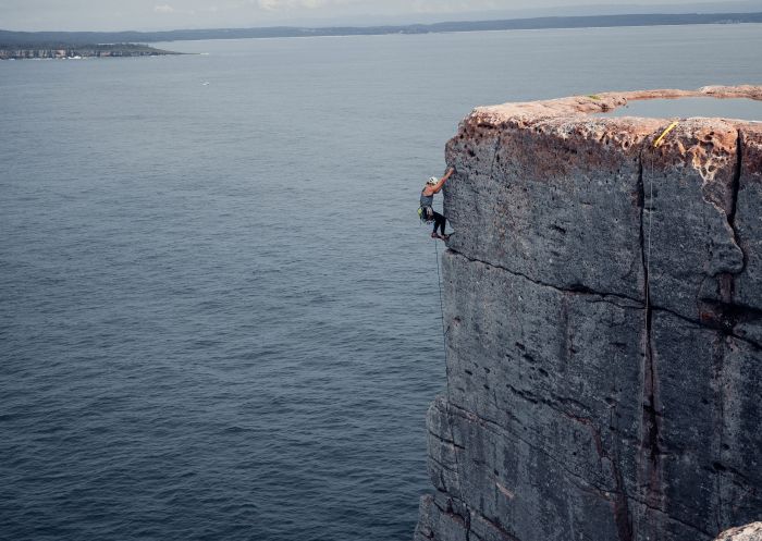 There are so many great locations in NSW. Point Perpendicular in Jervis Bay has short adventurous sea cliff climbing just a couple hours from Sydney. The vast ocean stretches out below you, whales are breaching and you’re making your way up a 20m blue streaked sandstone wall.