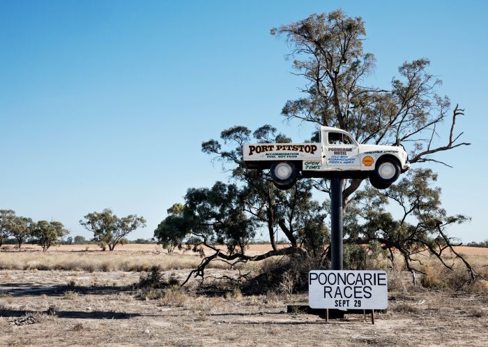 You’ll find several places to stay. The Pooncarie Telegraph Hotel Motel is a classic outback pub that offers comfortable accommodation. Another option is the two-bedroom Port Pitstop Cottage, which overlooks the tranquil Bilbarka Park. Or you can appreciate the serenity and camp on the banks of the Darling River.