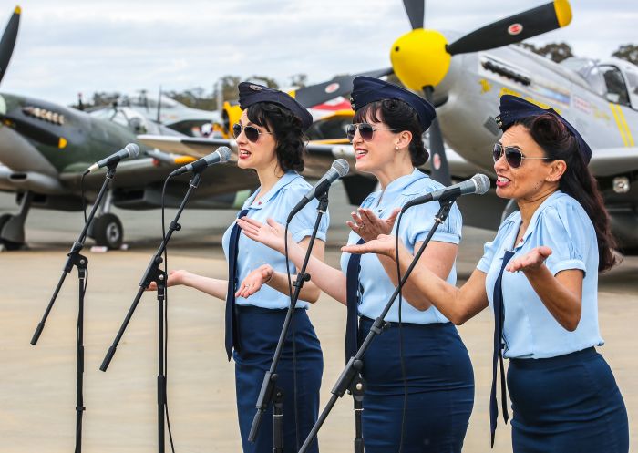 Singers performing on the tarmac at Warbirds Downunder Airshow 2018, Temora