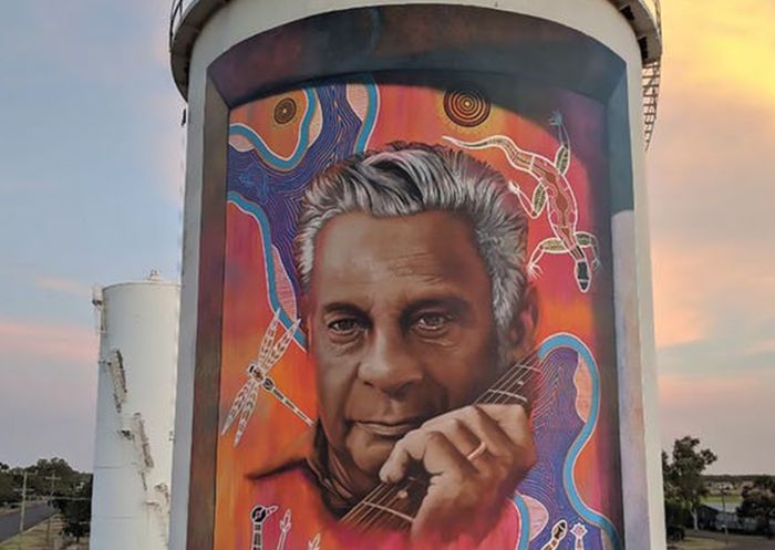 Walgett Water Tower Mural - Jimmy Little in Walgett, Lightning Ridge